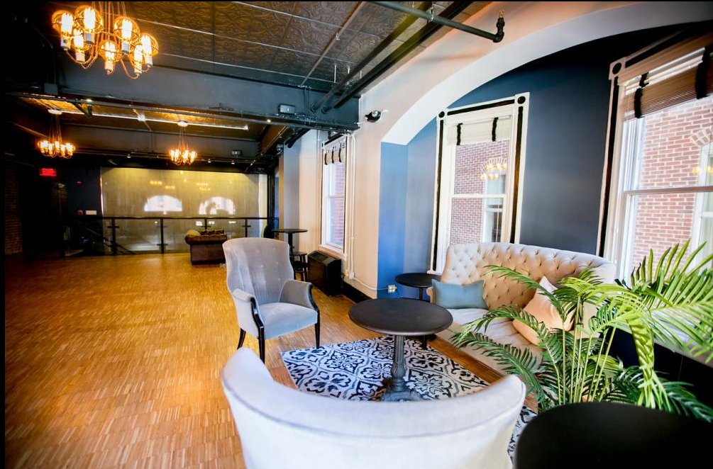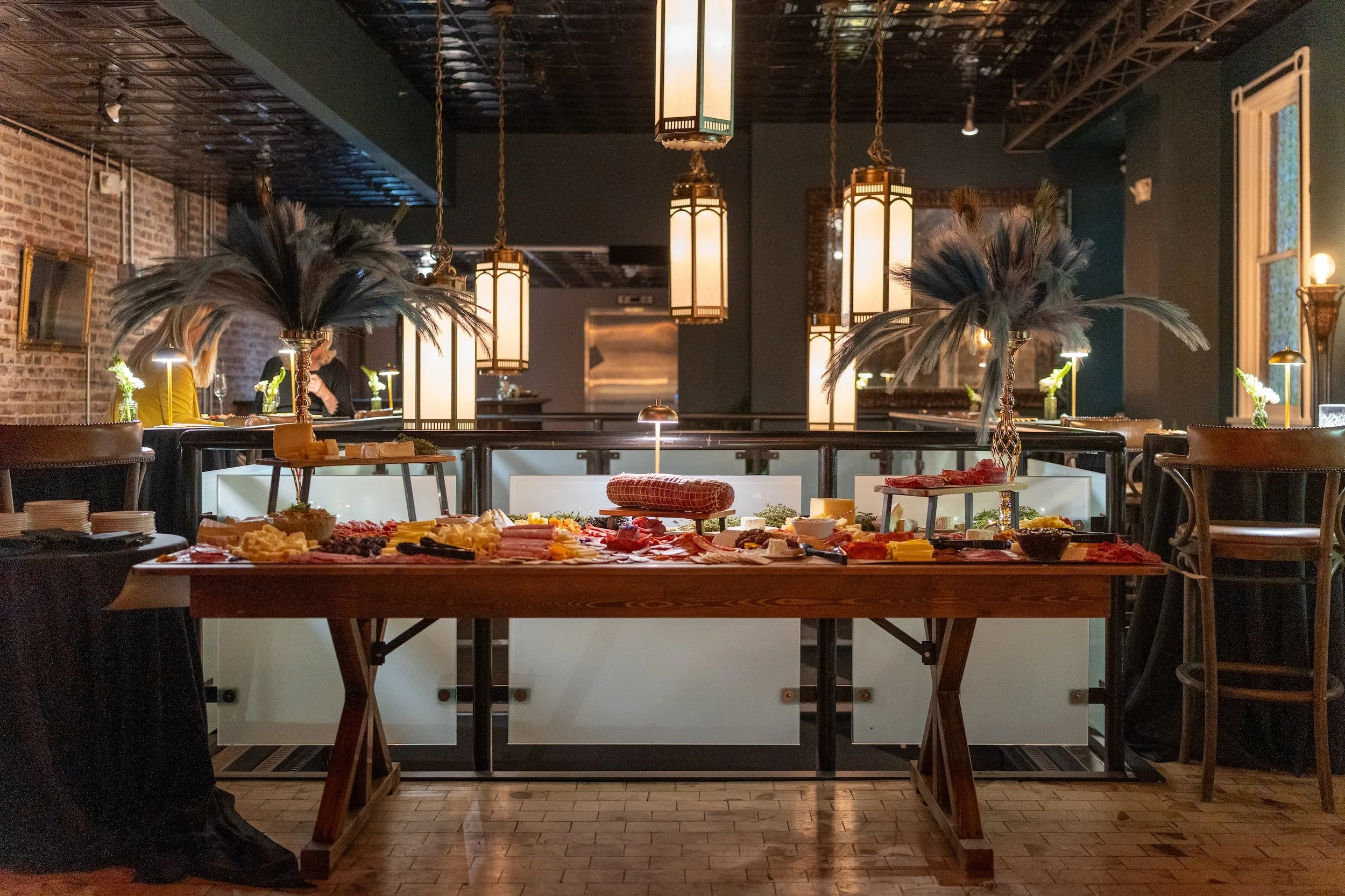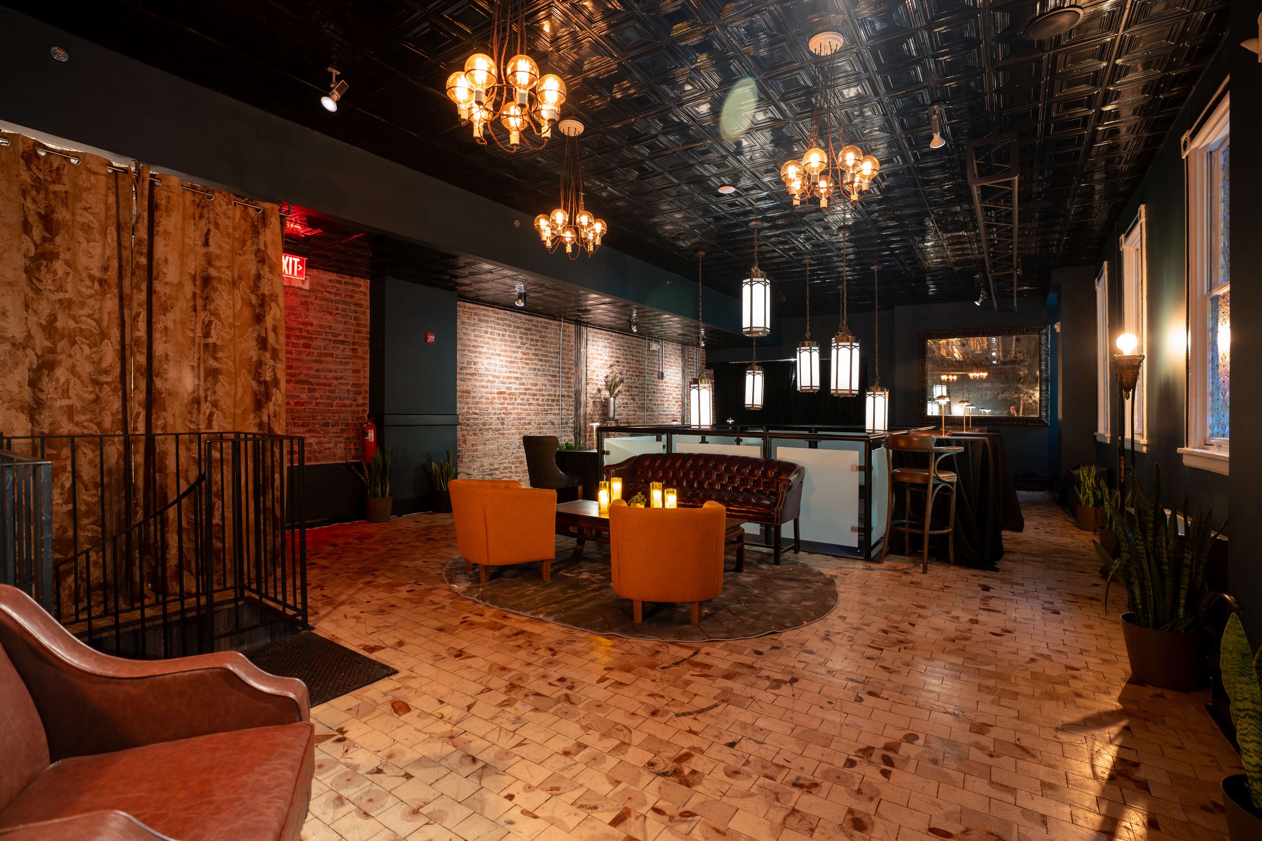 A spacious room with exposed brick and tin ceilings ideal for presentations, mixers, and curated celebrations.